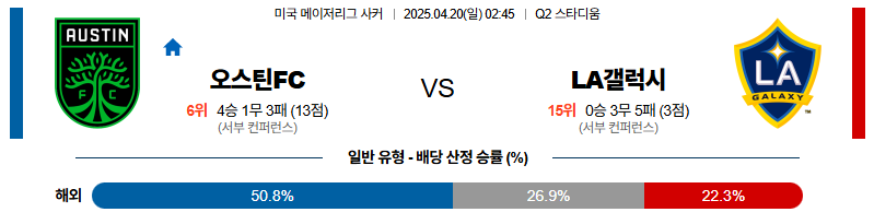 오스틴 대 LA갤럭시 메이저리그사커 04월20일 맞대결 생중계, 스포츠중계, 스포츠분석