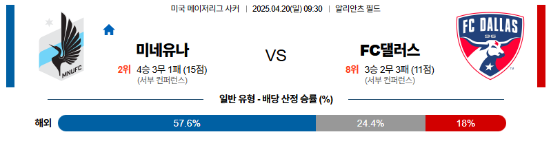 미네소타 대 댈러스 메이저리그사커 04월20일 맞대결 생중계, 스포츠중계, 스포츠분석