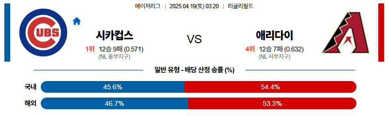시카고컵스 대 애리조나 MLB 04월19일 맞대결 생중계, 스포츠중계, 스포츠분석