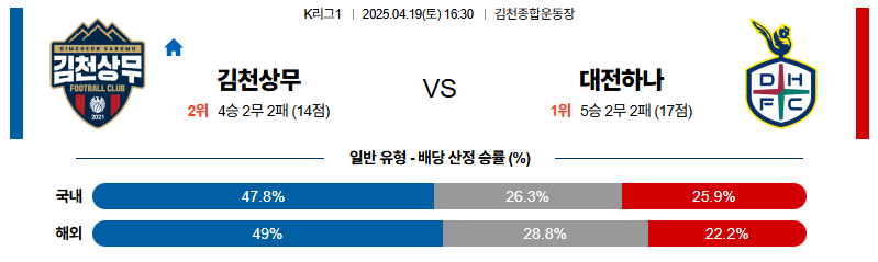 김천 대 대전 K리그1 04월19일 맞대결 생중계, 스포츠중계, 스포츠분석
