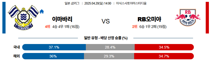 이마바리 대 오미야 J리그2 04월20일 맞대결 생중계, 스포츠중계, 스포츠분석