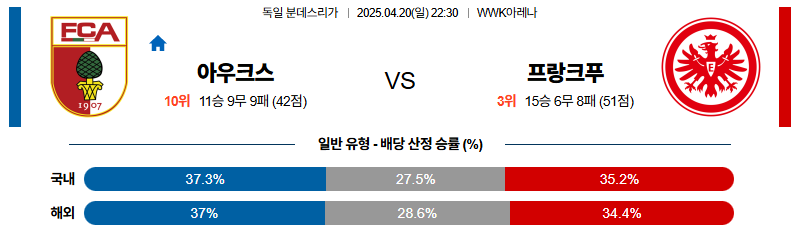 아우크스 대 프랑크푸르트 분데스리가 04월20일 맞대결 생중계, 스포츠중계, 스포츠분석
