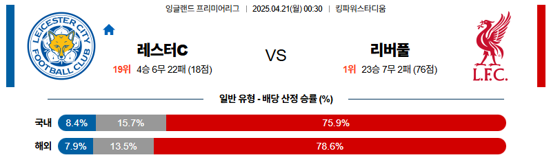레스터 대 리버풀 프리미어리그 04월21일 맞대결 생중계, 스포츠중계, 스포츠분석