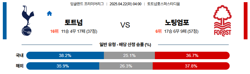 토트넘 대 노팅엄 프리미어리그 04월22일 맞대결 생중계, 스포츠중계, 스포츠분석