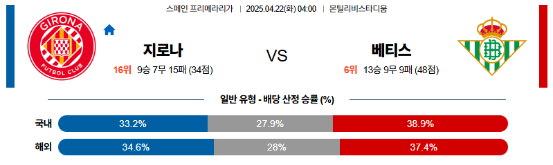 지로나 대 베티스 라리가 04월22일 맞대결 생중계, 스포츠중계, 스포츠분석