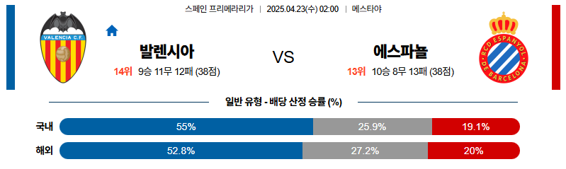 발렌시아 대 에스파뇰 라리가 04월23일 맞대결 생중계, 스포츠중계, 스포츠분석