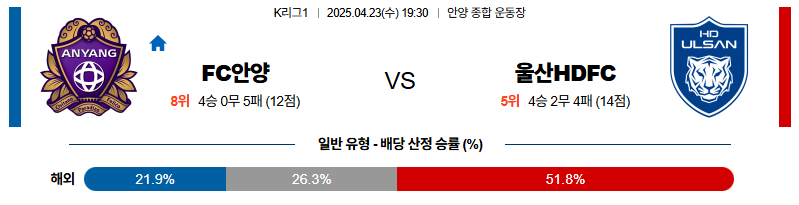 안양 대 울산 K리그1 04월23일 맞대결 생중계, 스포츠중계, 스포츠분석