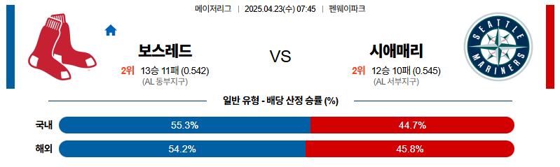 보스턴 대 시애틀 MLB 04월23일 맞대결 생중계, 스포츠중계, 스포츠분석