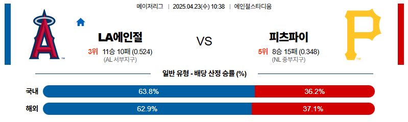 LA에인절스 대 피츠버그 MLB 04월23일 맞대결 생중계, 스포츠중계, 스포츠분석
