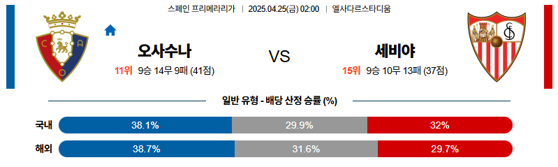 오사수나 대 세비야 라리가 04월25일 맞대결 생중계, 스포츠중계, 스포츠분석