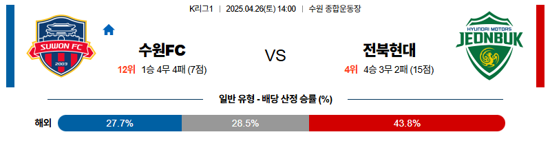 수원FC 대 전북 K리그1 04월26일 맞대결 생중계, 스포츠중계, 스포츠분석
