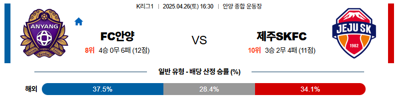 안양 대 제주 K리그1 04월26일 맞대결 생중계, 스포츠중계, 스포츠분석