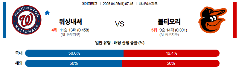워싱턴 대 볼티모어 MLB 04월25일 맞대결 생중계, 스포츠중계, 스포츠분석