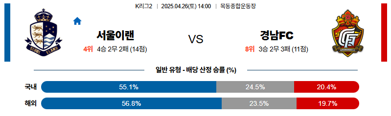 서울이랜드 대 경남 K리그2 04월26일 맞대결 생중계, 스포츠중계, 스포츠분석