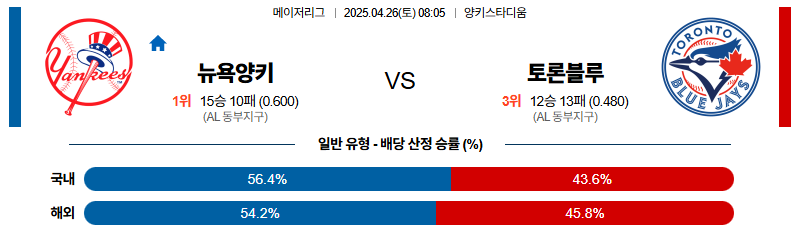 뉴욕양키스 대 토론토 MLB 04월26일 맞대결 생중계, 스포츠중계, 스포츠분석