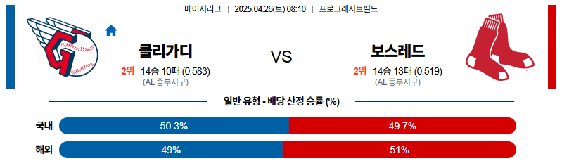 클리블랜드 대 보스턴 MLB 04월26일 맞대결 생중계, 스포츠중계, 스포츠분석