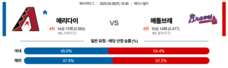 애리조나 대 애틀랜타 MLB 04월26일 맞대결 생중계, 스포츠중계, 스포츠분석