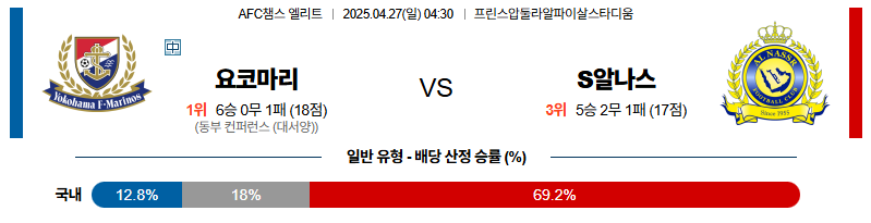 요코하마마리노스 대 알나스르 AFC챔피언스리그 04월27일 맞대결 생중계, 스포츠중계, 스포츠분석