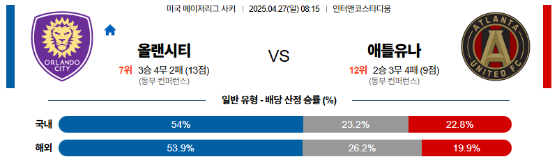 올랜도시티 대 애틀랜타 메이저리그사커 04월27일 맞대결 생중계, 스포츠중계, 스포츠분석
