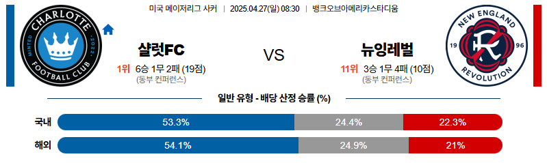 샬럿 대 뉴잉글랜드 메이저리그사커 04월27일 맞대결 생중계, 스포츠중계, 스포츠분석