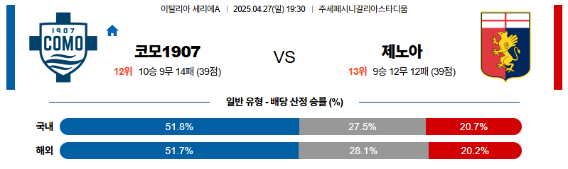 코모 대 제노아 세리에A 04월27일 맞대결 생중계, 스포츠중계, 스포츠분석