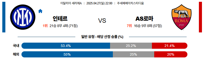 인터밀란 대 AS로마 세리에A 04월27일 맞대결 생중계, 스포츠중계, 스포츠분석
