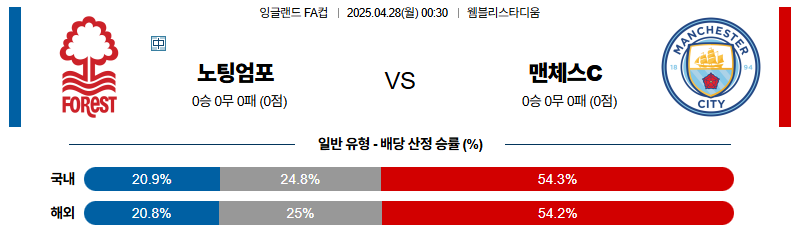 노팅엄 대 맨시티 잉글랜드FA컵 04월28일 맞대결 생중계, 스포츠중계, 스포츠분석