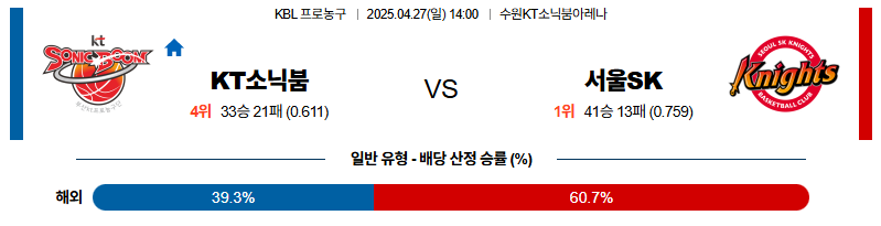 수원KT 대 서울SK KBL 04월27일 맞대결 생중계, 스포츠중계, 스포츠분석