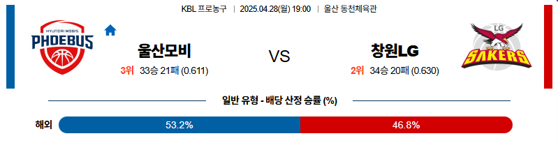울산현대모비스 대 창원LG KBL 04월28일 맞대결 생중계, 스포츠중계, 스포츠분석