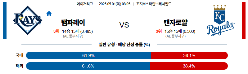 탬파베이 대 캔자스시티 MLB 05월01일 맞대결 생중계, 스포츠중계, 스포츠분석
