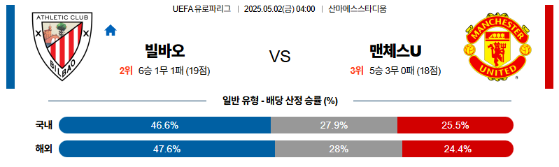 빌바오 대 맨유 UEFA유로파리그 05월02일 맞대결 생중계, 스포츠중계, 스포츠분석