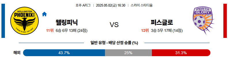 웰링턴피닉스 대 퍼스글로리 호주A리그 05월02일 맞대결 생중계, 스포츠중계, 스포츠분석