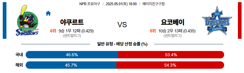 야쿠르트 대 요코하마 NPB 05월01일 맞대결 생중계, 스포츠중계, 스포츠분석