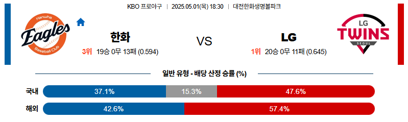 한화 대 LG KBO 05월01일 맞대결 생중계, 스포츠중계, 스포츠분석