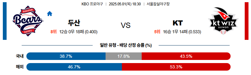 두산 대 KT KBO 05월01일 맞대결 생중계, 스포츠중계, 스포츠분석