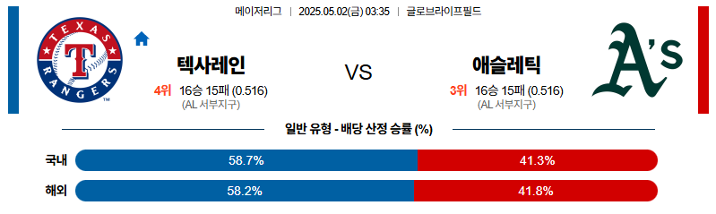 텍사스 대 애슬레틱스 MLB 05월02일 맞대결 생중계, 스포츠중계, 스포츠분석