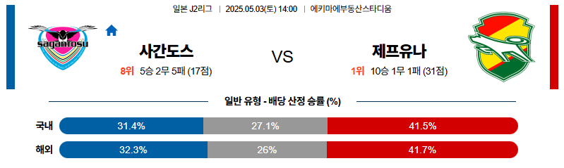 사간도스 대 제프유나 J리그2 05월03일 맞대결 생중계, 스포츠중계, 스포츠분석