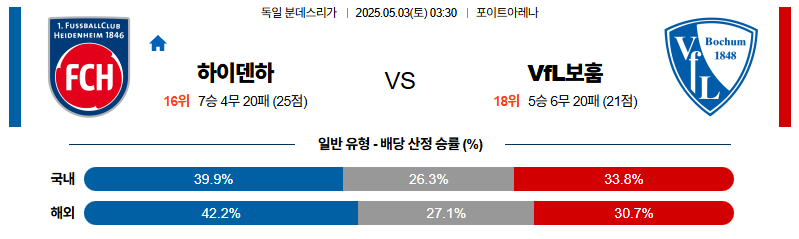 하이덴하임 대 보훔 분데스리가 05월03일 맞대결 생중계, 스포츠중계, 스포츠분석