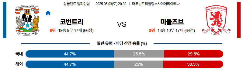 코번트리 대 미들즈브러 잉글랜드챔피언쉽 05월03일 맞대결 생중계, 스포츠중계, 스포츠분석