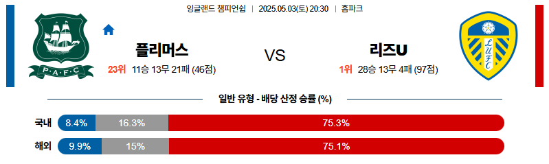 플리머스 대 리즈 잉글랜드챔피언쉽 05월03일 맞대결 생중계, 스포츠중계, 스포츠분석