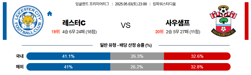 레스터시티 대 사우스햄튼 프리미어리그 05월03일 맞대결 생중계, 스포츠중계, 스포츠분석