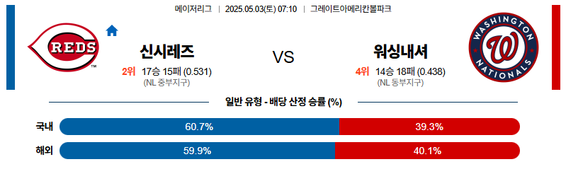 신시내티 대 워싱턴 MLB 05월03일 맞대결 생중계, 스포츠중계, 스포츠분석
