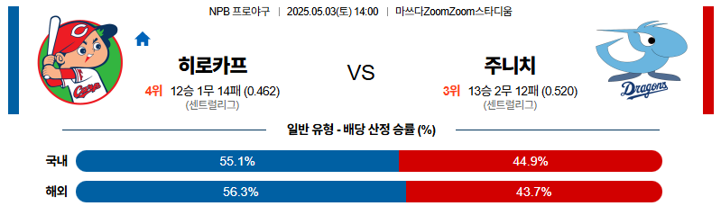 히로시마 대 주니치 NPB 05월03일 맞대결 생중계, 스포츠중계, 스포츠분석