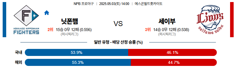니혼햄 대 세이부 NPB 05월03일 맞대결 생중계, 스포츠중계, 스포츠분석