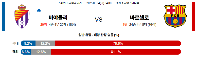 바야돌리드 대 바르셀로나 라리가 05월04일 맞대결 생중계, 스포츠중계, 스포츠분석