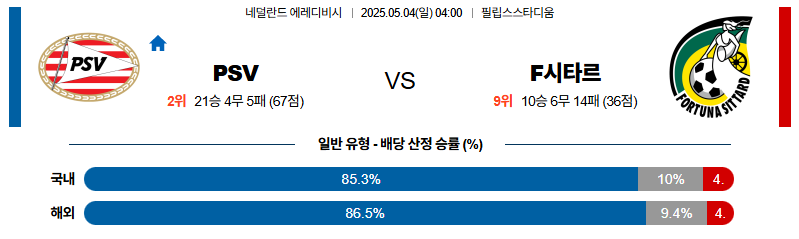 아인트호벤 대 시타르트 에레디비지에 05월04일 맞대결 생중계, 스포츠중계, 스포츠분석