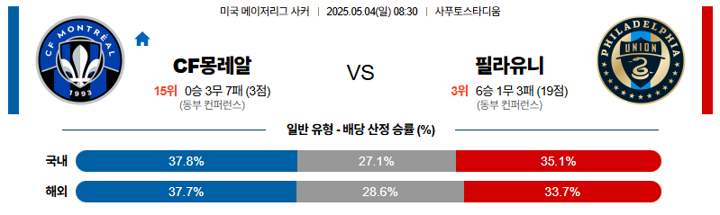 몬트리올 대 필라델피아 메이저리그사커 05월04일 맞대결 생중계, 스포츠중계, 스포츠분석