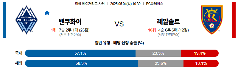 벤쿠버 대 솔트레이크 메이저리그사커 05월04일 맞대결 생중계, 스포츠중계, 스포츠분석