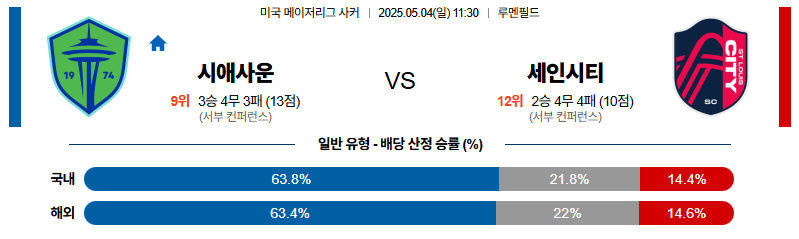 시애틀 대 세인트루이스 메이저리그사커 05월04일 맞대결 생중계, 스포츠중계, 스포츠분석