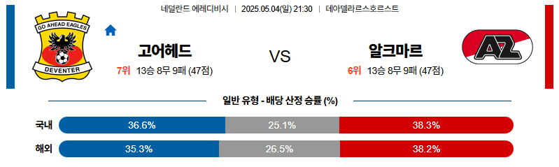 고어헤드 대 알크마르 에레디비지에 05월04일 맞대결 생중계, 스포츠중계, 스포츠분석